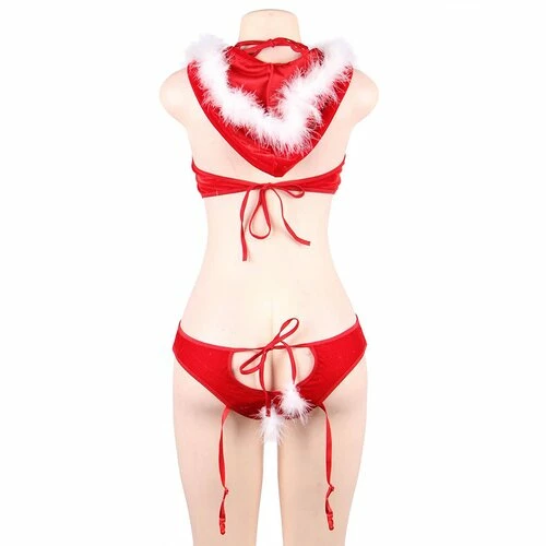 β’ Sexy festive teddy in soft red velour with fluffy white detailsΒ