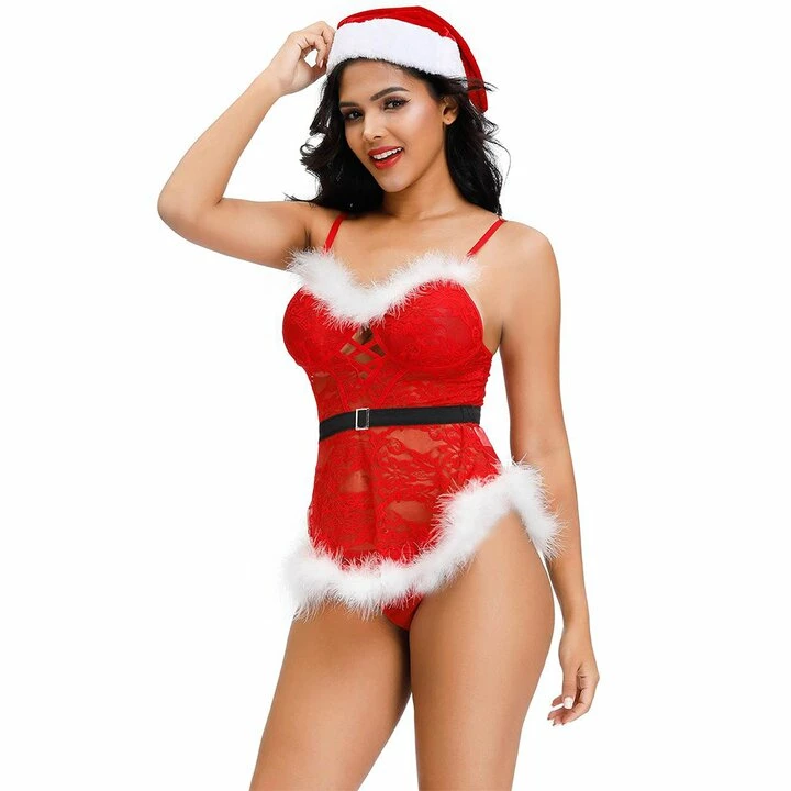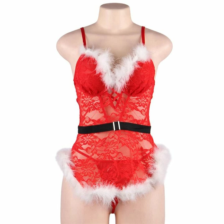 Inspire twelve days of desire in the Bondara Flirt Santa Baby Red Lace Chemise And G-String – No mistletoe required!