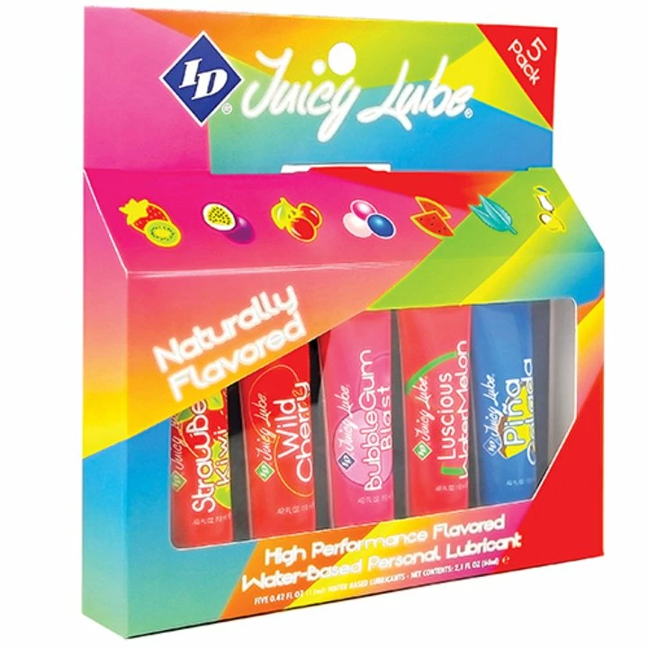• 5 x 12ml tubes of ID Juicy Lube in a selection of flavours so you can try them out before choosing a big bottle!