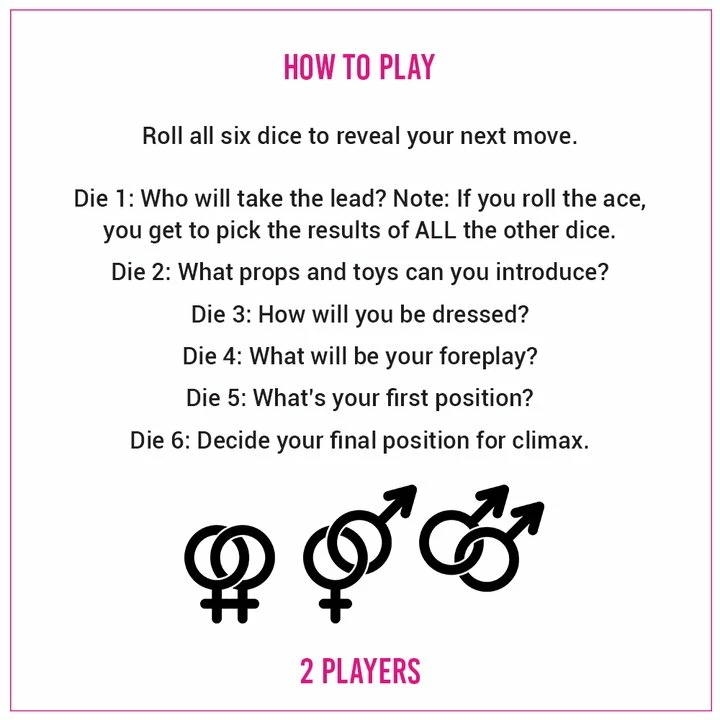 โข Hundreds of sexual fantasies to be revealed by the roll of a dice